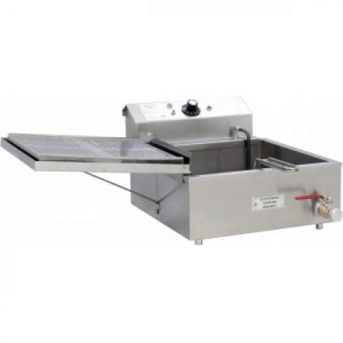 Фритюрница электрическая, настольная, с 1 ванной 6л, аварийным термостатом, 2 решетками, рукояткой, крышкой-полкой с распоркой, корпусом из нержавеющей стали.