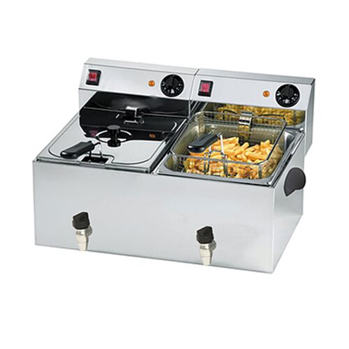 Фритюрница MEC FT88V предназначена для приготовления различных продуктов в большом количестве масла на предприятиях общественного питания и торговли. Модель оснащена 2 корзинами из стальной проволоки, решетчатой подставкой и 2 герметичными крышками. Корпус и рабочие детали изготовлены из нержавеющей стали, защищающей от коррозии, ручки - из термостойкого материала.Особенности:-2 механических панели управления со светосигнальной арматурой.-Терморегулятор.-Термостат безопасности.-Предохранительный выключатель.-Включатель / выключатель ТЭНов?.-Крюк для подвешивания корзины.