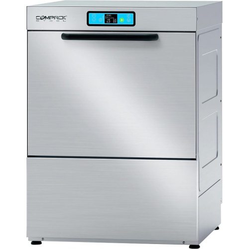 Посудомоечная машина с фронтальной загрузкой Compack PL56E серии PLUS используется на предприятиях общественного питания и торговли для мойки тарелок, стаканов, чашек и столовых приборов. Модель оснащена электронной панелью управления и подключением к горячей и холодной воде. Корпус выполнен из нержавеющей стали AISI 304. Комплектация: Корзина для стаканов размером 500x500x100 мм.Корзина для тарелок на 18 мест размером 500x500x100 мм. 2 держателя для приборов. Воронка для соли. Особенности: Автоматический умягчитель. Цикл самоочистки в конце дня позволяет предотвратить. образование внутри известкового налета. Функция Termostop следит за тем, чтобы мытьё и ополаскивание начинались только после достижения требуемой температуры. Непрерывная самодиагностика. Высота корзины: 100 мм Расход воды за цикл: 2 л.Объем: Бойлер: 7,3 л Моечная ванна: 26 л.Мощность: Бойлер: 5,4 кВт.ТЭН: 2,6 кВт.Моющий насос: 0,52 кВт.Жесткость воды: от 15 °f.Размер гастроемкостей: GN 1/1 (530х325 мм). Встренный дренажный насос.