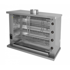 Рамная конструкция, цепная передача вращения шампуров, полный газ.контроль. Гриль на 35 тушек, 4 шампура в первом ряду+3 шампур во втором ряду, выполнен полностью из нержавеющей стали, готовит курицу за 55 минут, 4 газовых крана с системой газ-контроль. . . .. . . .
