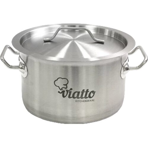 Кастрюля VIATTO 101342 с крышкой предназначена для приготовления широкого спектра блюд. Выполнена из нержавеющей стали, имеет тройное дно. Рекомендуется к применению как на предприятиях общественного питания и торговли, так и на домашней кухне. Подходит для использования с индукционной варочной панелью.
