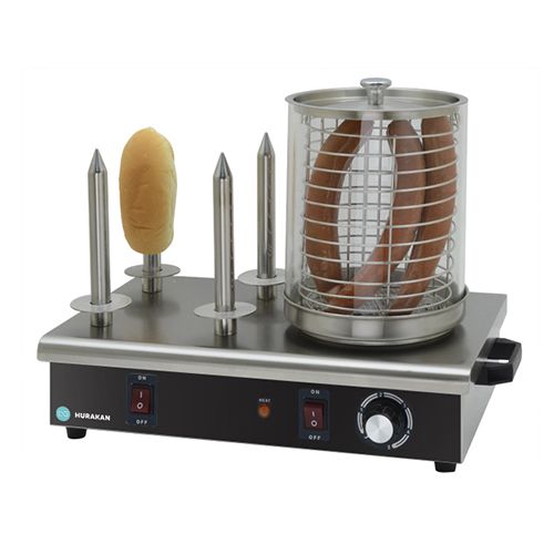 Аппарат для хот догов Hurakan предназначен для отваривания сосисок и подогрева булочек. Модель оснащена паровой баней для варки и хранения в горячем виде сосисок, а также четырьмя нагреваемыми штырями для подогрева булочек изнутри. Идеально подходят для оснащения уличных точек и заведений быстрого питания.