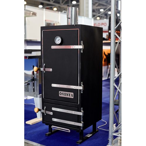 Коптильня Vesta K предназначена для приготовления мяса, рыбы, сыра и овощей с использованием дров и древесного угля.ОсобенностиМакс. загрузка - 9 кг, решетка 326х383мм, 7 уровней, колосник, поддон для золы, поддон для щепы.