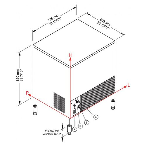Льдогенератор Brema CB 640W предназначен для производства кубикового льда высокой плотности и кристальной чистоты, который широко используется для охлаждения напитков в отелях и на предприятиях общественного питания. Модель оснащена съёмным очищаемым воздушным фильтром, регулируемыми по высоте ножками и электромеханическим управлением. Корпус модели выполнен из нержавеющей стали AISI 304 с отделкой Scotch Brite, ножки - из нержавеющей стали. Рекомендуется дополнительно приобрести водоумягчитель и фильтр-систему для очистки и смягчения воды. Особенности:. Хладагент R452A. Водяное охлаждение - требуется подвод и отвод воды. Тропический климатический класс. Производственный процесс регулируется термостатом и таймером. Бункер с закруглёнными углами обеспечивает гигиеничность и удобство очистки. Изолированная дверь. Тумблер ON / OFF. Сертификация RoHS. Дополнительные характеристики:. Возможные размеры льда:. А: 35x31x31 мм, 18 грамм. C: 40x35x39 мм, 33 грамма. D: 30x26x29 мм, 13 грамм. E: 42x39x43 мм, 42 грамма. Потребление воды: 12,8 л/кг. Температура окружающей среды: от +10 до +43 °C. Температура используемой воды: от +3 до +32 °C. Давление воды на входе: 1,6 бар. Сила тока: 10 А. Высота ножек: 110-150 мм. Габариты в упаковке: 780х640х1015 мм. *Высота льдогенератора указана без учета длины ножек.