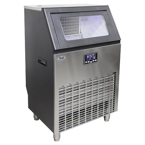 Льдогенератор ROAL HZB-150 F/AB предназначен для приготовления кубикового льда, используемого для охлаждения различных напитков на предприятиях общественного питания и торговли. Устройство выдает лед в виде разделенной на ячейки цельной пластины, которую можно легко расколоть на отдельные кубики. Модель оснащена компрессорным агрегатом, откидной дверцей, панелью управления с кнопочной клавиатурой и жидкокристаллическим дисплеем индикации. Корпус выполнен из нержавеющей стали и пластика. Особенности:. Воздушное охлаждение. Регулировка размера кубиков и длительности приготовления. Программа самоочистки. Окно в дверце для визуального контроля процесса. Светодиодная подсветка бункера. Цифровая индикация температуры окружающей среды в градусах Цельсия и Фаренгейта, обратного отсчета времени приготовления льда и настроек таймера. Символьная сигнальная индикация работы или режима ожидания, наличия или отсутствия воды, заполнения бункера льдом, самоочистки и активации подсветки. Самодиагностика с ндикацией кодов неисправностей. Возможность эксплуатации с бутилированной водой. Экологически безопасный и энергоэффективный хладагент R290. Эргономичный дизайн. Дополнительные характеристики:. Производительность: 120 куб./цикл. Длительность 1 цикла заморозки: от 10 до 20 мин. Рекомендуемая максимальная продолжительность непрерывной работы / перерыва: 24 / 1 ч. Параметры кубика льда:. Масса: от 8 до 10 г. Габариты: 22х22х22 мм