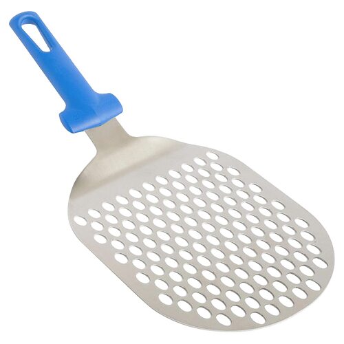 Лопатка для пиццы ITPIZZA AC-STP81F используется на предприятиях общественного питания и торговли для сервировки пиццы, лазаньи, кулинарной выпечки и других блюд. Изделие имеет эргономичную ручку с отверстием, перфорированную поверхность, ровные края, изгиб у основания и овальную форму. Лопатка выполнена из нержавеющей стали, ручка - из жаропрочного пластика.