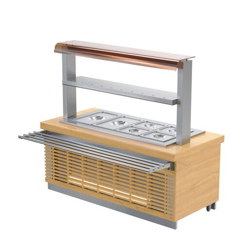 - Имеется возможность комплектования 1-но или 2-х ярусной полкой для размещения тарелок с блюдами