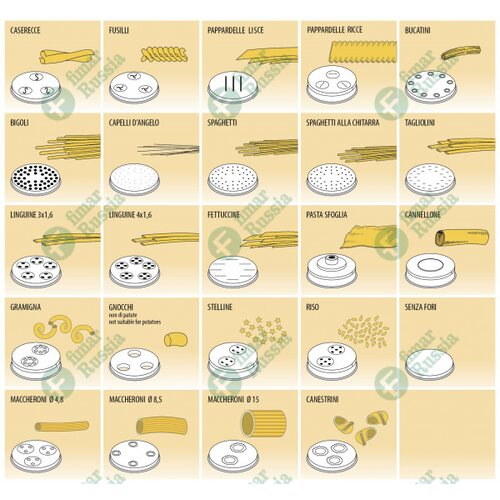 Машина для пасты Fimar MPF8 создана, чтобы готовить разнообразную по форме пасту. Благодаря большому выбору насадок, вы сможете приготовить классические спагетти, лазанью, пасту барбине, фетуччини, тальятелле. Длинная и короткая паста, разнообразие форм - теперь вы можете радовать посетителей заведения традиционными блюдами популярной итальянской кухни.Управлять паста-машиной очень просто, она надежна и неприхотлива в обслуживании. Обучать персонал для работы специально не потребуется. Машина для пасты осуществляет полный цикл производства: от замешивания теста до получения готовых изделий.Дежа и месильный крюк оборудования сделаны из нержавеющей стали. На корпусе дежи расположен микровыключатель, который отключит машину, если вдруг несанкционированно откроется крышка. Винт и насадки паста-машины выпускаются из латунного или бронзового сплава. Корпус машины сделан из окрашенного металла.Пастамашина - оборудование, которое повысит производительность труда и позволи готовить качественные макаронные изделия.