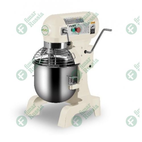 Миксер планетарный Fimar Easy Line B20K - профессиональное оборудование, с помощью которого вы сможете замесить тесто, взбить крем или суфле и приготовить пюре. Миксер этот электрический и относится к типу планетарных. В таком миксере месильный орган вращается не только вокруг своей оси, но и вокруг оси дежи. Эта технология дает возможность вымесить содержимое дежи так, чтобы не было комочков.Принцип работы миксера прост. Дежа наполняется ингредиентами для смешивания, включается кнопка и процесс замешивания запускается. Миксер имеет три скорости на выбор, чтобы вы могли обеспечить лучший замес для масс разной консистенции и плотности. Дежа опускается и поднимается вручную. Она съемная. Сверху есть металлическая крышка-решетка. Она не дает разбрызгиваться продуктам в процессе замешивания.Для безопасности работы с миксером предусмотрен механизм аварийного отключения в случае поднятия крышки дежи. Двигатель миксера НЕ имеет защиту от перегрузок. В комплекте с миксером поставляются крюк, венчик и лопатка. Крюк нужен для замеса дрожжевого теста, венчиком можно замешивать и взбивать суфле, легкие виды теста, кремов. Лопатка используется для смешивания начинок для пирогов, взбивания пюре и получения глазури. Для производства миксера используются нержавеющая сталь и алюминий. Дежа, решетчатая крышка и венчик сделаны из нержавеющей стали, а лопатка и крюк изготовлены из алюминия.
