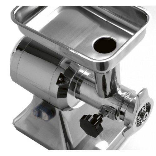 ОписаниеМясорубка FAMA TS12 FTS 106 UE с системой ножей 1/2 Unger — образец высококачественного оборудования, применяемого в ресторане, баре, кафе или пиццерии для измельчения мяса или птицы на фарш. Мясорубка незаменима на любой профессиональной кухне.Мясорубка данной модели характеризуется высокой прочностью комплектующих и отличным внешним видом.Загрузочное устройство мясорубки соответствует всем требованиям безопасности.Антикоррозийная облицовка из нержавеющей стали защищает от появления ржавчины на поверхностях мясорубки.Оптимальная конструкция мясорубки делает возможным ее использование в небольших помещениях, где площадь рабочего места ограничена.ОсобенностиМясорубка электромеханическая с системой HALF-UNGER (последовательная установка подрезной решетки, ножа, финальной решетки) и производительностью до 150 кг/ч.Есть реверс, включается кратковременно, без фиксации.Устанавливается на регулируемых по высоте ножках.Компоненты мясорубки защищены от случайного попадания воды.Вентилятор, принудительно охлаждающий обмотки двигателя.ХарактеристикиКорпус настольной мясорубки из силумина.Хобот из чугуна.Шнек, решетка и трех лопастной нож (со сменными лезвиями из легированной инструментальной стали).Диаметр решетки 70 мм.Размер режущей системы - 12.В комплекте поставкиПластиковый толкательЛоток для подачи мяса размером 22,5*37 смПриемный лоток размером 31*23,8 см