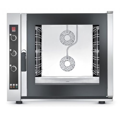 Пароконвектомат Tecnoeka EKF 711 UD серии Eka Evolution отвечает всем современным стандартам качества и требованиям безопасности.Произведен по новейшим технологиям, собрана из высококачественных итальянских комплектующих.Конструкция парокновектомата позволяет максимально эффективно использовать рабочее пространство кухни.Детали оборудования выполнены из нержавеющей стали и антикоррозийных материалов.Пароконвектомат EKF 711 UD способен заменить сразу несколько единиц теплового оборудования. Благодаря своей многофункциональности, он позволяет приготовить богатый ассортимент блюд: мясо, рыбу, курицу, морепродукты, овощи, всевозможные гарниры и закуски, а также простую выпечку. Во время приготовления различных блюд одновременно, не происходит смешения запахов и вкусов, и при этом продукты сохраняют все полезные свойства: витамины и микроэлементы. Управлять оборудованием очень легко с помощью механической панели.Внутреннее освещение рабочей камеры позволяет следить за процессом приготовления. Двойное термостойкое стекло обеспечивает обзор блюд, благодаря чему отпадает необходимость открывать дверь пароконвектомата.ОсобенностиМеханическая панель управленияДва реверсивных вентилятораТип парообразования: инжекторОхлаждение внешнего стекла двериВнутреннее освещениеРаспашная дверь с двойным термостойким стекломДатчик открывания двериПреимущества серии Eka EvolutionСовременный дизайнУлучшенная конструкция камерыНержавеющая сталь AISI 304Улучшенная панель управленияНовые дверные петли и крепления для легкой чисткиУвеличенная теплоизоляцияПринудительное охлаждение для защиты электрических компонентовОтсутствие отверстий на стенках печи(Каталог гастроемкостей)(!) Для смягчения и декальционирования водопроводной воды рекомендуется приобрести водоумягчитель.