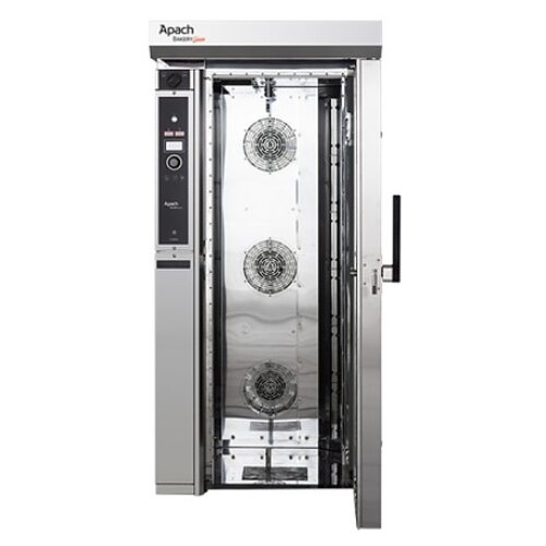 Ротационная электрическая печь Apach Bakery Line B46E APTA используется на предприятиях пищевой промышленности и в пекарнях для выпечки хлебобулочных и мучных кондитерских изделий. Модель оснащена автоматической панелью управления. Камера и лицевые панели выполнены из нержавеющей стали, дверца - из двойного стекла, теплоизоляционные панели - из спрессованной минеральной ваты. Особенности:. Полный набор опций, необходимых для выпечки любого типа продукта. Система вращения при помощи крюка. Еженедельная программируемая система зажигания с 2 ежедневными программами. 199 сохраняемых программ с 5/10 фазами выпечки. Козырек с вытяжкой пара. Дверь из нержавеющей стали с двойным остеклением и системой открывания на 180° помогает предотвратить ожоги рук оператора, что часто происходит при открытии дверей на 90°. Высокоэффективная теплоизоляция благодаря панелям из спрессованной минеральной ваты. Электрическая коробка встроена в переднюю часть печи под панелью управления - позволяет сэкономить пространство. Защита уплотнителей позволяет избежать повреждений при столкновении с тележками. Печь можно установить в проем между 3 стенами - техническое обслуживание осуществляется только спереди или сверху. Подходит для установки в помещениях с низкими потолками. Поставляется в полной сборке. Современный и технологичный дизайн. Опции (заказываются отдельно):. Электромеханическая панель управления с программируемой системой зажигания. Усиленный парогенератор. Видео