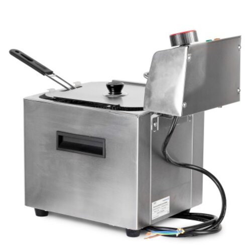 Фритюрница HEF-8L предназначена для обжаривания продуктов в большом количестве масла при высокой температуре на предприятиях общественного питания. Процесс приготовления: корзина наполняется полуфабрикатами, опускается в ванну с разогретым маслом или жиром, благодаря чему продукты проходят тепловую обработку. Модель выполнена из нержавеющей стали.