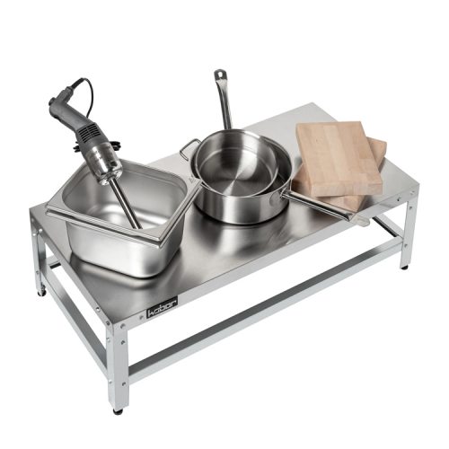 Особенности:- столешница нерж. cталь. aisi 430,- каркас: уголок оцинк. сталь,- обвязка с 4-х сторон