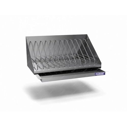 Полка навесная КАМИК ПН 900*400*800 может быть размещена как над ванной моечной в моечном отделении, так и над производственным столом в кухонных цехах.