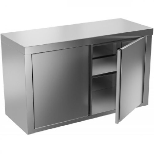 Полка настенная закрытая с 2 распашными дверями, 1 промежуточной полкой, сварной конструкцией, из нержавеющей стали AISI 430.