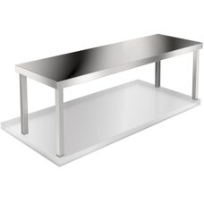 Полка П-образная настольная открытая сварная с 1 сплошным уровнем, ребрами жесткости, 4 стойками из профильной трубы 30х30мм, кронштейнами для крепления к столешнице, из нержавеющей стали AISI 430.