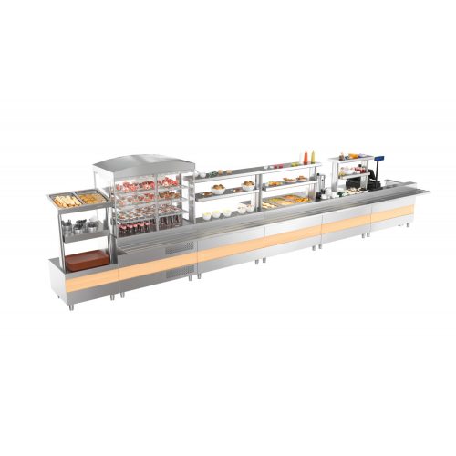 - Увеличивает полезное пространство за счет открытых ниш со стороны обслуживающего персонала, которые можно использовать для хранения посуды и инвентаря, тем самым экономя пространство и обеспечивая безопасность в обслуживании