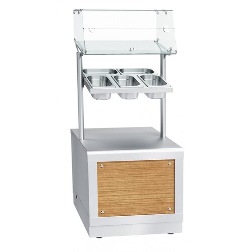 Прилавок для столовых приборов и подносов ПСПХ-70Х с хлебницей предназначен для раздачи потребителям столовых приборов и подносов, а также хлеба.Характеристики:- 5 вариантов съемных панелей: орех, дуб, вишня, красное золото и нержавеющая сталь