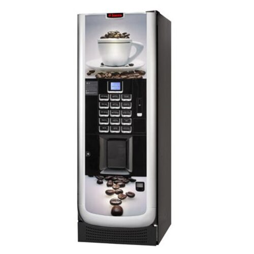 Торговый автомат Saeco Atlante 500, ориентирован на места средней и высокой проходимости, может использоваться как отдельно, так и в группе со снэковыми автоматами Aliseo и Corallo. В него можно загружать до 550 стаканчиков, а 15 основных кнопок можно запрограммировать на приготовление до 39 напитков.Приготовленный автоматом кофе заваривается в одноразовые стаканчики, которые выдаются автоматически вместе с размешивателями (зависит от настройки). Подсвечиваемые кнопки, LCD-дисплей и удобное меню облегчают процесс заказа.Основные :Благодаря центральному кофейному устройству готовится эспрессо высшего качества;Возможность установки всех типов платёжных систем (3 вида оплаты);Эстетичный дизайн “U-profile” привлекает внимание покупателей, и прекрасно вписывается в любой интерьер;Революционная особенность нового автомата – вращающаяся на 180 градусов внутренняя панель, которая значительно упрощает доступ к внутренним частям автомата, его ремонт и обслуживание.ПараметрыГабариты (мм) ШxВxД646 х 1830 х 810Вес,кг160Пиковая мощность, Вт1700Автоматическое вкл/выклДаЦветЧерный, серебристыйПодача водыПодключение к водопроводуДаТип подключения к водопроводу3/4" (1-8 бар)Количество контейнеров,штКофе1Растворимые продукты4Сахар1Загрузка контейнеров, кгКофе3Шоколад3.5Чай4Молоко сухое1.3Сахар4.5Платёжные системы и доп.опцииСистема Венд АналитикаДаПанель кнопок выбора продуктаДаМонетоприемник с функцией выдачи сдачиДаТерминал безналичной оплатыДаКарточная системаДа