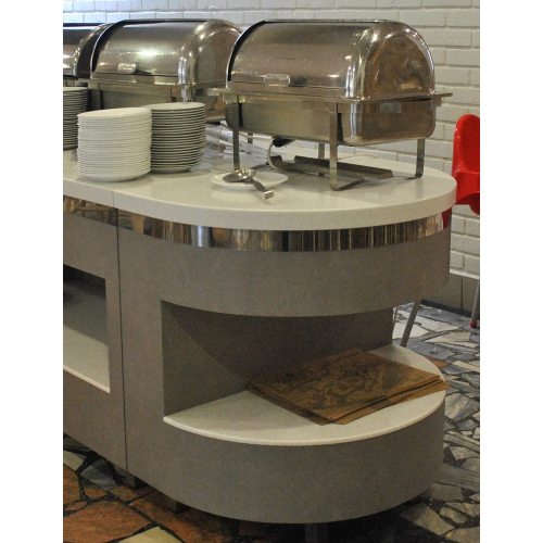 Стол нейтральный полукруглый серии Русьпредназначен для демонстрации и раздачи блюд, не нуждающихся в подогреве/охлаждении или для установки оборудования для напитков, чафиндишей (настольных мармитов) в санаториях, пансионатах, предприятиях общественного питания с системой обслуживания шведский стол: