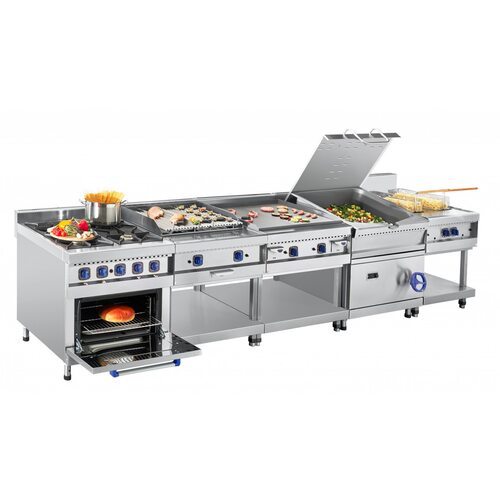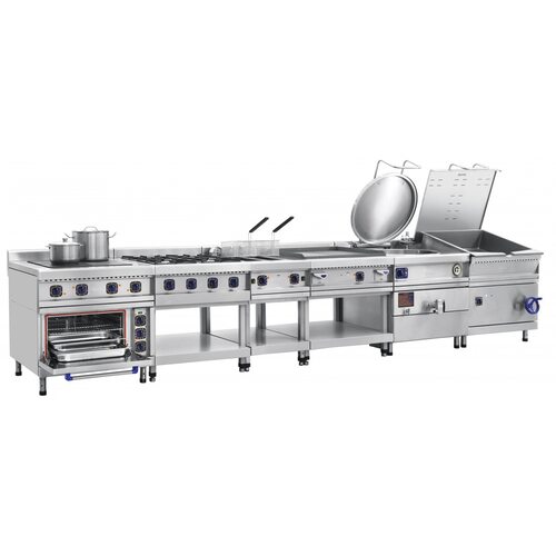 Сковорода газовая кухонная типа ГСК предназначена для жарки продуктов основ ным способом, пассерования овощей, тушения, а также припускания мясных, рыбных иовощных изделий на предприятиях общественного питания самостоятельно или в соста ве технологических линийХарактеристики:- 900 серия