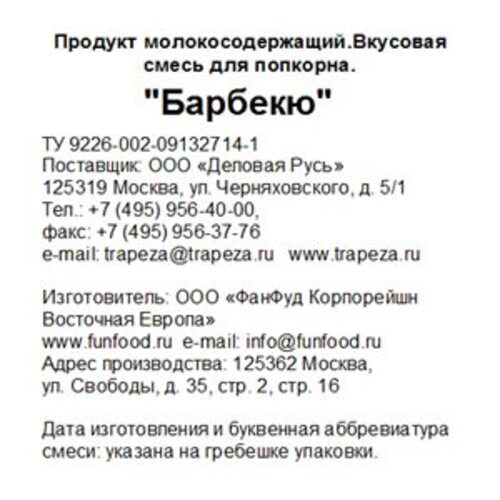 ПроизводительFunFood Corporation East Europe, РОССИЯ