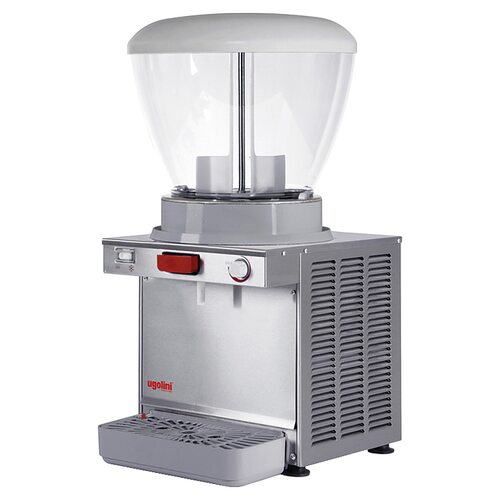 Универсальный сокоохладитель UGOLINI A 19 используется в барах, кафе, на открытых летних площадках, в специальных отделах супермаркетов и торговых центрах для хранения, охлаждения и порционного розлива натуральных соков с мякотью, чая, кофе и других негазированных напитков. Вращение крыльчатки гарантирует однородность консистенции и температуры продукта, а кран - бесперебойную подачу содержимого чаши. Корпус выполнен из нержавеющей стали, съемная чаша - из противоударного поликарбоната. Особенности:. Герметичный компрессор. Конденсатор с воздушным охлаждением. Регулируемый термостат. Каплесборник. Предохранитель двигателя. Дополнительные характеристики:. Уровень шума: менее 70 дБ