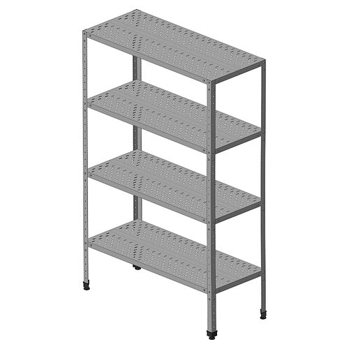 Стеллаж ITERMA СТК-П-Э-6/5 предназначен для хранения посуды, кухонной утвари и сухих продуктов на предприятиях общественного питания и торговли. Модель оснащена ножками, регулирующимися по высоте. Каркас выполнен из уголка 40х40 мм из оцинкованной стали, перфорированные полки - из нержавеющей стали  AISI 430 толщиной 0,5 мм.