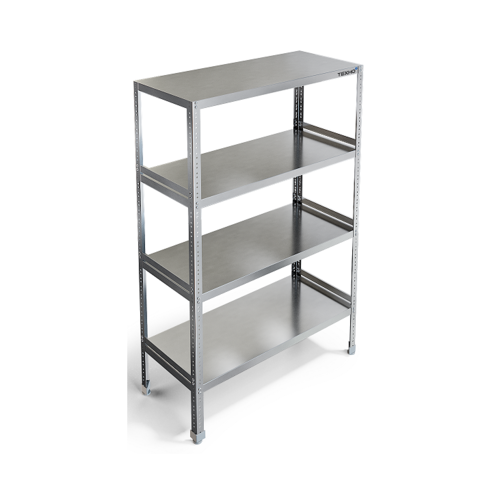 ОписаниеСтеллаж Техно-ТТ СТР-114/1700 используется в кухонных цехах для хранения сухих видов продуктов и кухонного инвентаря.ОсобенностиСтеллаж технологический разборный, стойки из уголка 40х40 толщиной 2мм, покрытого порошковой краской серого цвета. Четыре сплошные полки из нержавеющей стали марки AISI 304 толщиной 0,8мм. Расстояние между полками регулируемое с шагом 50мм. Регулируемые опоры. Стеллаж поставляется в разобранном виде.Стеллаж имеет разборную конструкцию и состоит из четырёх стоек и четырёх полок. Стойки изготовлены из конструкционного профиля толщиной 2 мм, покрытого порошковой краской. Полки сплошные изготовлены из нержавеющей стали AISI304, могут крепиться на требуемой высоте - шаг 100 мм. Ножки стеллажа снабжены регуляторами высоты, что позволяет устранять неровности пола и дополнительные конструктивные элементы, предназначенные для предотвращения его раскачивания во время работы и придающие большую устойчивость. Универсальная конструкция позволяет легко производить сборку стеллажей. Нагрузка на каждую полку не более 150 кг, при этом не более 400 кг на весь стеллаж. При необходимости можно приобрести любое количество полок дополнительно.