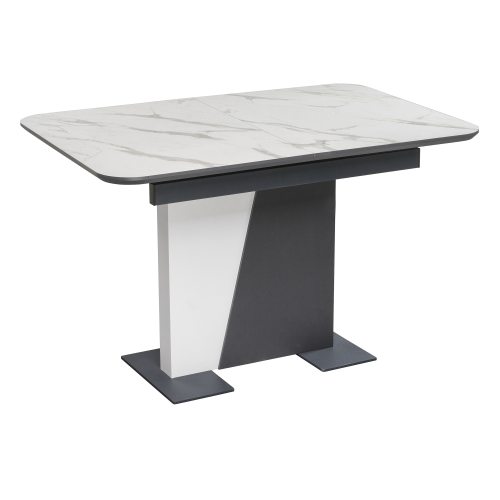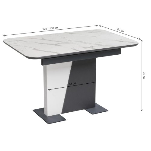 Стол на тумбе Кларк - это современный и функциональный предмет мебели, который отлично подойдет для любой кухни или столовой. Ножки и каркас стола сделаны из металла и МДФ, что придает ему прочность и стабильность. Столешница изготовлена из МДФ, толщина которой составляет 20 мм. Благодаря механизму легкого раскладывания, стол может быть увеличен с помощью вставки до 150 см, что позволяет использовать его как для небольших семейных ужинов, так и для больших компаний.