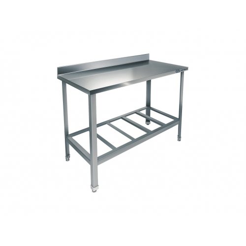 Cтол на каркасе из оцинкованного металла, столешница из AISI430 с бортом. Внизу полка решетка из оцинкованной стали.