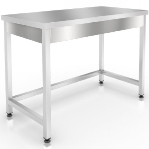 Стол производственный центральный открытый, серии Standart, без борта, с рёбрами жёсткости, сварным каркасом, регулируемыми ножками из профильной трубы 40х40мм, обвязкой с 3-х сторон, отступом задних ног на 80мм, из нержавеющей стали AISI 430.