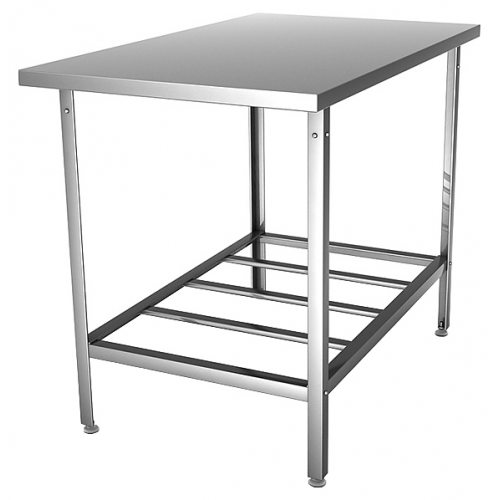 Производственный стол Hessen СПО 9/6 используется на предприятиях пищевой промышленности, общественного питания и торговли как для работы с продуктами питания, так и для хранения на нем посуды и кухонного инвентаря. Изделие произведено с использованием программы Technology without Injuries - комплекса технологических решений, направленных на уменьшение травмоопасности для персонала, работающего на оборудовании. Каркас и полка выполнены из оцинкованной стали, столешница - из пищевой нержавеющей стали с укреплением из ламинированного ДСП.