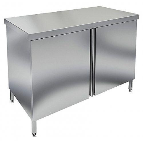 Производственный стол Hessen СТРО 6/6 используется на предприятиях пищевой промышленности, общественного питания и торговли как для работы с продуктами питания, так и для хранения посуды, кухонного инвентаря и сухих продуктов. Изделие произведено с использованием программы Technology without Injuries - комплекса технологических решений, направленных на уменьшение травмоопасности для персонала, работающего на оборудовании. Каркас, дверки и полка выполнены из углеродистой стали, покрытой полимерной краской, столешница - из пищевой нержавеющей стали с укреплением из ламинированного ДСП.