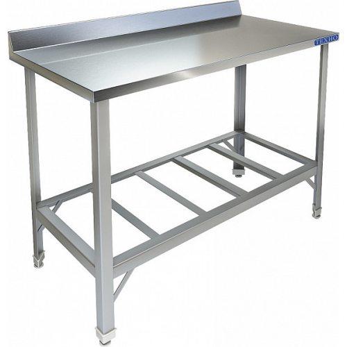 Конструкционные элементы для придания устойчивости и предотвращения раскачивания при эксплуатацииХарактеристикиКачественное оборудование является залогом эффективности работы компании Техно-ТТ. Примером уникального оснащения для предприятий пищевой промышленности и производств, связанных непосредственно с приготовлением пищи, является производственный стол . Он изготовлен из нержавеющей стали марки AISI 304 и окрашенного метала. Имеет объемный бортом высотой 70мм. Столешница из нержавеющей стали марки AISI 304 толщиной 0,8мм. Каркас разборный из уголка 40х40 толщиной 2мм, покрытый порошковой краской серого цвета. Полка-решетка из крашенного металла толщиной 2мм. Регулируемые опоры. Стол поставляется в разобранном виде.