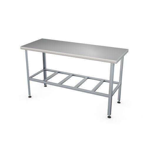 - Столешница, полка и каркас выполнены из нержавеющей стали AISI430, углы столешницы заварены и зашлифованы что обеспечивает гигиеническую безопасность и облегчает санитарную обработку