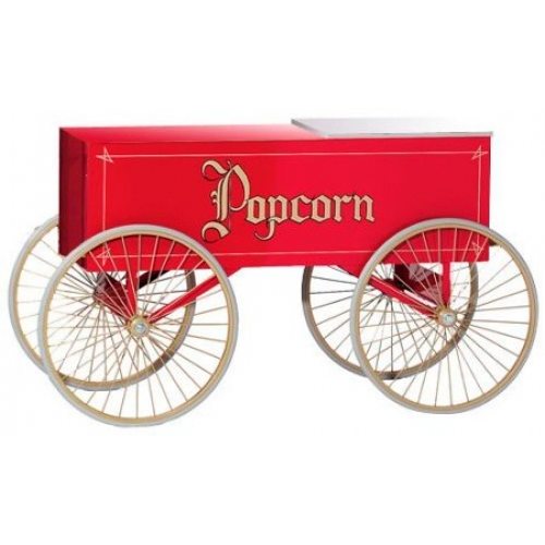 четырехколесная красная к попкорн аппарату.