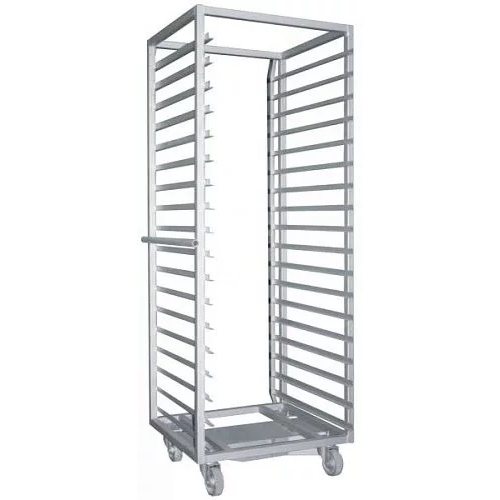 - Удобная разборная конструкция на четырех колесах позволяет без особых усилий транспортировать как хлебобулочные заготовки, так и готовую продукцию располагающуюся на пекарских листах