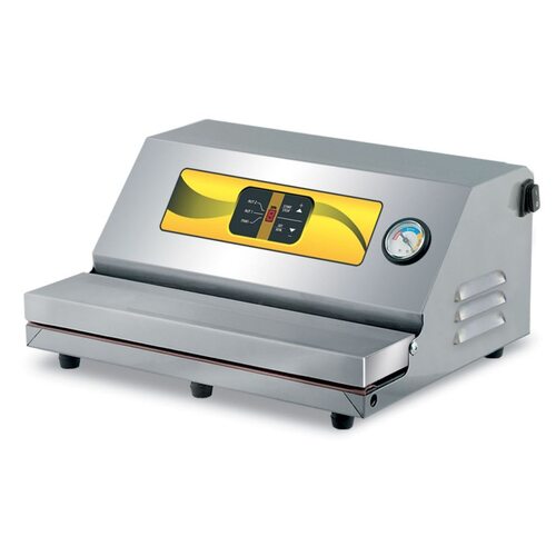 ОписаниеБескамерный вакуумный упаковщик Lavezzini Small широко применяется для вакуумной упаковки продуктов питания на кухнях ресторанов, кафе и предприятиях общественного питания.Его главная особенность — отсутствие рабочей камеры, откачка происходит непосредственно из вакуумного пакета.Аппарат требует минимального времени на подготовку к работе. Ввиду минимальных размеров и массы, он обладает высокой мобильностью.Вакуумная упаковка существенно замедляет рост бактерий, приводящих к порче продуктов, улучшает вкусовые качества продуктов (дозревание в упаковке), сохраняет влагу и все полезные вещества продукта, существенно увеличивает срок хранения продуктов на кухнях ресторанов и на складах магазинов.ОсобенностиВакуумная упаковочная машина настольная бескамерная.Производительность помпы: 15 м³/ч.Длина запаиваемого шва 32 см.Откачивание воздуха происходит непосредственно из пакета, что позволяет упаковывать крупноразмерные продукты.Он применяется для вакуумной упаковки мясной, соевой продукции, приправ, сухофруктов, хлебобулочных изделий, продукции химической промышленности, медикаментов и других гранулированных порошкообразных и жидких продуктов.Возможно использование пакетов произвольной длины с открытой стороной не превышающей 32 см.Степень вакуумирования 91—92 %.Панель управления позволяет задавать время работы помпы и время работы нагревательных элементов запаивающих шов.Манометр для визуального контроля степени вакуумирования, кнопка включения аппарата.Автоматический старт цикла вакуумирования при закрывании верхнего фиксатора.Автоматическое запаивание шва по окончании цикла вакуумирования.Автоматическое плавное открывание фиксатора по завершении цикла.Корпус машины изготовлен из нержавеющей стали AISI304.Компактные размеры позволяют убирать машину с рабочей поверхности стола в периоды простоя.Подключение к сети переменного тока с помощью обычной вилки 220/1/50.(!) Бескамерный аппарат для вакуумной упаковки не имеет рабочей камеры, в связи с этим следует использовать специальные гофрированные пакеты (с микроканалами, по которым воздух выкачивается из пакета)!Преимущества вакуумной упаковки и сроки хранения продуктов