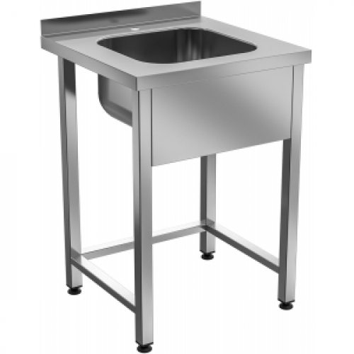 Ванна моечная пристенная открытая, серии Standart 430, с бортом, 1 цельнотянутой мойкой 400х500х250мм из нержавеющей стали AISI 304, отверстием D32мм под смеситель, сифоном, широким фартуком с фронтальной стороны, обвязкой с 3-х сторон, отступом задних ног на 80мм, сварным каркасом из профиля 40х40мм, столешницей и каркасом из нержавеющей стали AISI 430.