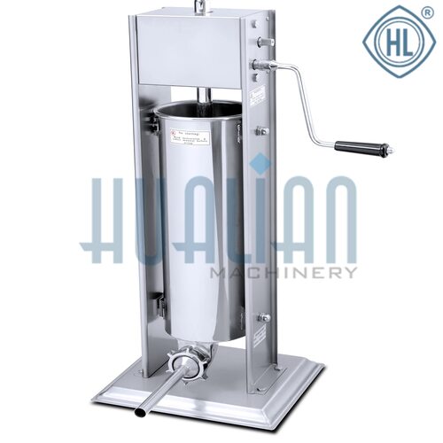Вертикальный колбасный шприц TV-7L предназначен для быстрого изготовления колбасных изделий, паштетов и других продуктов в оболочке из натурального или искусственного сырья. Объем загрузочного бункера 7 л. Аппарат адаптирован к работе с различным по составу и консистенции сырьем мясным, рыбным, овощным фаршем, начинками для паштетов, плавлеными сырами и т.п. Емкость и производительность данной модели оптимально подходит для средних и небольших производств и предприятий общественного питания. Все детали, соприкасающиеся с продуктом, и сам корпус выполнены из пищевой нержавеющей стали. В комплект поставки входит набор насадок (цевок) диаметром 15,18, 24 и 37 мм. Используя насадки различного диаметра, оператор может изменять диаметр готовых изделий. Аппарат чрезвычайно прост в работе и обслуживании, а компактные габариты не требуют большой площади для установки и эксплуатации. Мы предлагаем вам оборудование, сертифицированное в соответствии с европейскими стандартами качества. Покупателю предоставляется официальная гарантия производителя. Технические параметры Вертикальный ручной шприц TV-7L