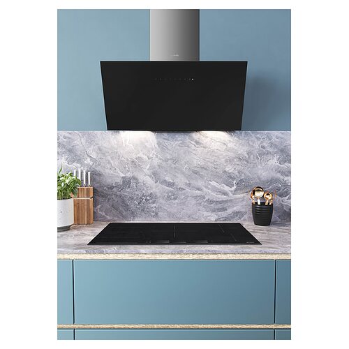 Вытяжка Smeg KICV90BL предназначена для очистки воздуха от продуктов горения, копоти и запахов. Модель оснащена сенсорным управлением Touch Control, алюминиевым жироулавливающим фильтром, осуществляющими первичную очистку воздуха, обратным клапаном и подсветкой. Возможна установка угольного фильтра. Дополнительные характеристики:. Производительность:. 1 скорость: 310 м3/ч. 2 скорость: 420 м3/ч. 3 скорость: 580 м3/ч. Интенстивный режим: 720 м3/ч. Уровень шума:. 1 скорость: 52 дБ(А). 2 скорость: 56 дБ(А). 3 скорость: 62 дБ(А). Интенстивный режим: 65 дБ(А). Мощность мотора: 0,27 кВт. Подсветка: 2 LED-лампы по 1 Вт. Диаметр воздуховода: 150 мм. Опции (заказываются отдельно):. Угольный фильтр KITFC152