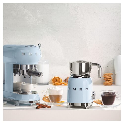 Вспениватель молока Smeg MFF01PBEU используется в частных домах и квартирах для приготовления молочной пены для кофейных напитков и горячего шоколада. Модель выполнена в стиле 50-х годов. Корпус и кувшин изготовлены из нержавеющей стали, крышка - из тритана.Комплектация: